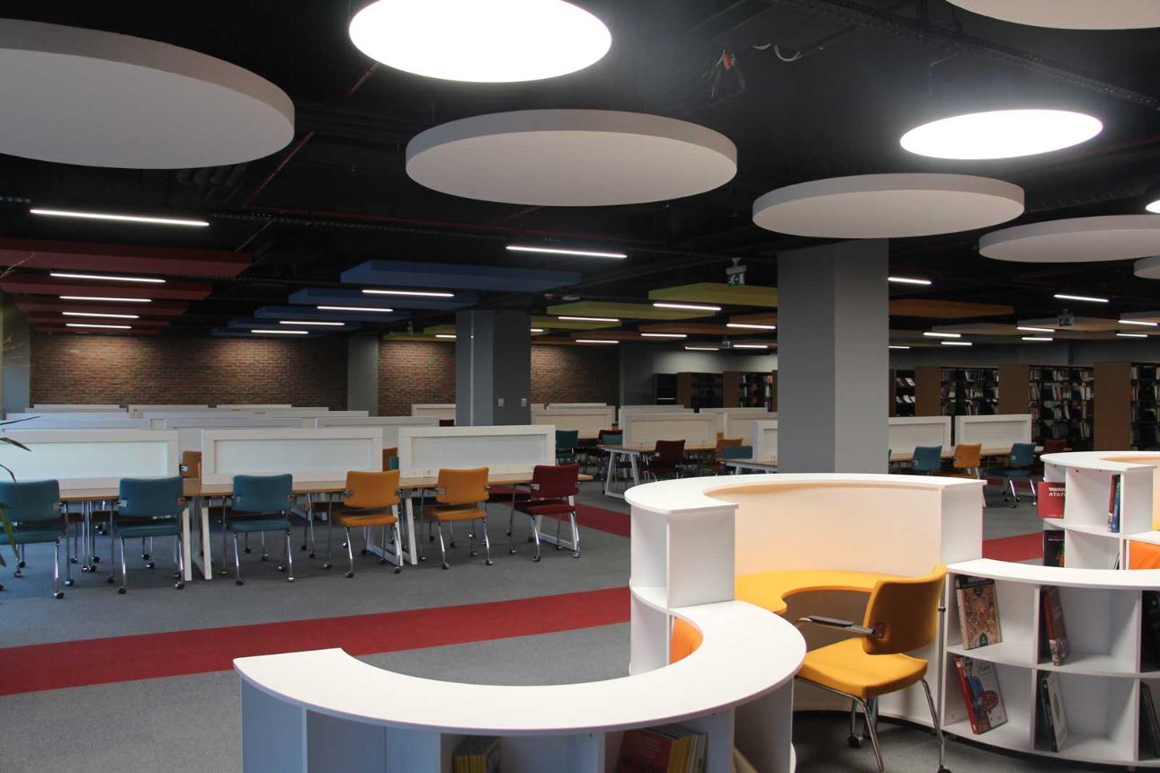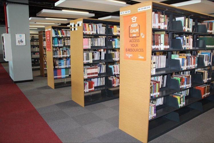 - Our University Library, located in F Block of the main campus, offers: 956 m² total area, 210 seating capacity, and shelf capacity for 25,000 books,