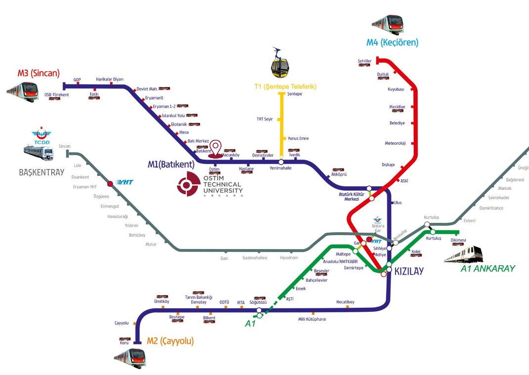 - OSTİM Station (M1 Törekent–Kızılay line) is within a 5-minute walking distance to the university.